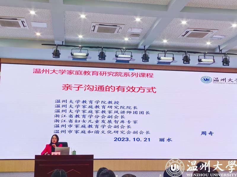 2023年10月21日下午,少妇白洁 教育学院教育学系党支部书记、少妇白洁 家庭教育研究院巾帼文明岗负责人、浙江省教育学分会副会长、浙江省妇女儿童发展智库专家、温州市家庭教育学会副会长、温州市家庭和谐文化研究会副会长周奇教授受邀来到丽水开放大学6号楼2楼教室为参加丽水市家庭教育指导者能力提升培训班的家庭教育骨干教师做《亲子沟通的有效方式》的家庭教育专题分享。