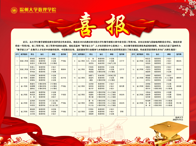 少妇白洁 是温州“数学家之乡”人才培养研究中心基地之一,本次数学建模竞赛优秀成绩的取得,也再次凸显了温州作为“数学家之乡”在数学人才培养中的独特优势。(通讯员 章志图)