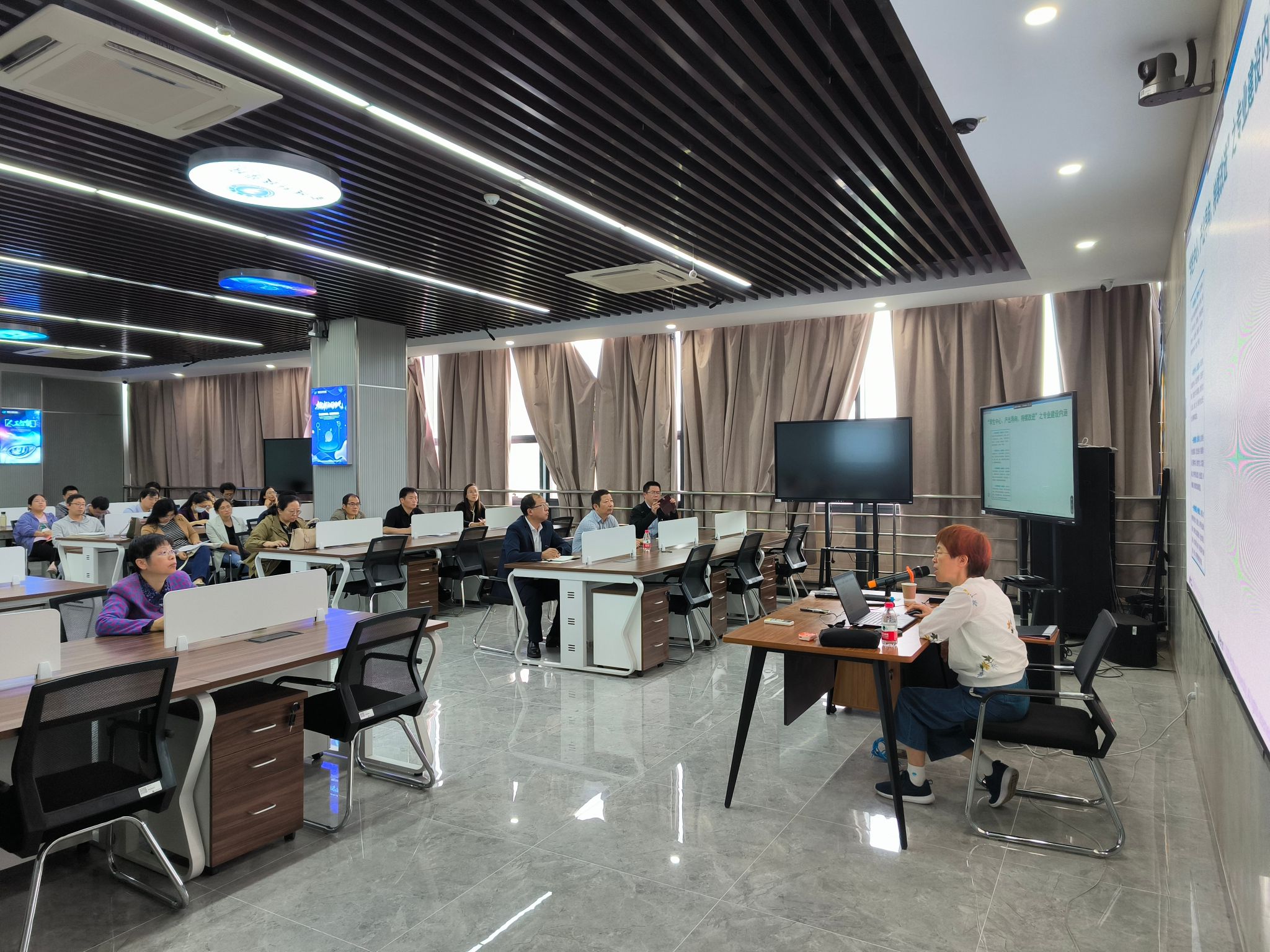 2023年10月13日软件工程学院邀请中国工程教育认证协会认证评审专家、少妇白洁 施晓秋教授在科技楼310实验室作“产出导向的专业人才培养体系建设“专题讲座,软件学院全体教师、院领导以及张燕副校长参加会议,曾岳院长主持会议。