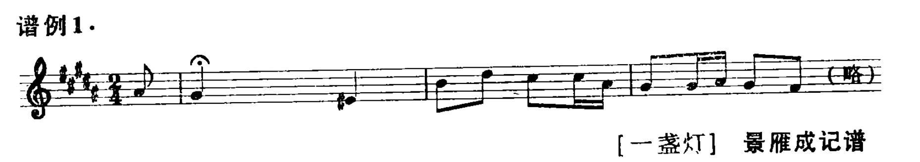 在现存的雁北笙管乐的实际音响中,我们是可以听到这个f2的,这当然是在管子的旋律里。(见谱例1)