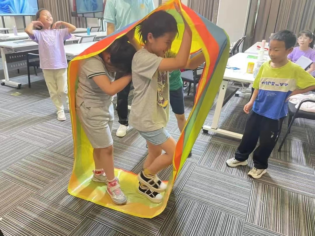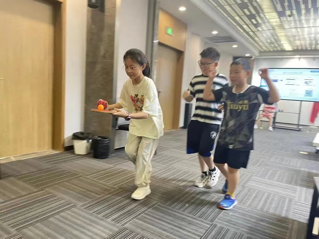 五天的快乐时光稍纵即逝,志愿者老师们在最后一天为营员们准备了趣味运动会,并设置了四个环节,把营员们随机分成五组,有的需要团结协作,有的需要集中注意力,有的需要有耐力,营员们在五天的相处中彼此熟悉,彼此信任,纷纷拿出了自己的“看家本领”,加油声,欢呼声,不绝于耳!