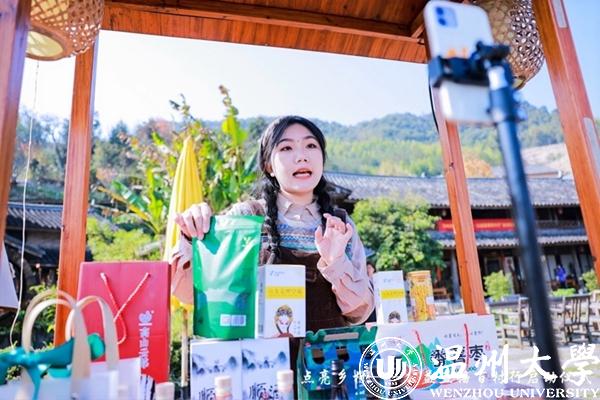 2021级工商管理专业毛佳璟同学是青才荟聚教育科技有限公司负责人,她介绍说,青才荟聚项目主要致力于于文旅运营、线上直播和线下团建研学业务,目前已经做到了温州文旅直播带货第一名,通过学校的牵线,她们团队正在积极对接泰顺、文成等当地乡村资源。