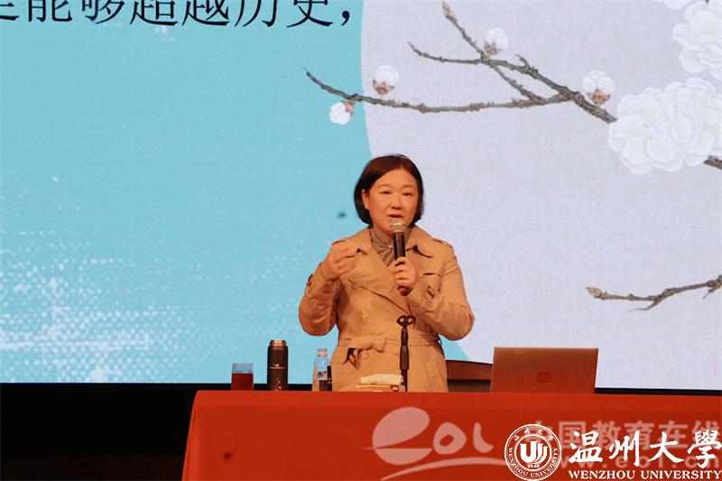 课堂上,蒋胜男从《燕云台》谈起,结合自身的职业成长经历为在场的师生们讲述了《芈月传》创作的过程,分享了自己文学创作的心路历程,并谈到历史小说的写作意义,展现了中国先秦、辽宋时期的历史文化、思想争鸣。