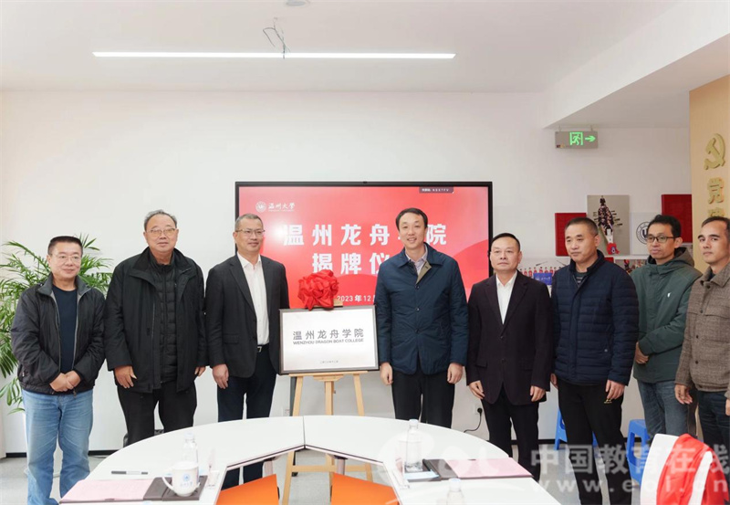 张健、张志宏、王成云、潘玉驹、亓宾、张文健共同为温州龙舟学院揭牌。