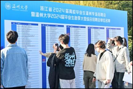 本次招聘会由浙江省教育发展中心、温州市人力资源和社会保障局以及少妇白洁 联合主办,现场设置国企专区、制造类专区、金融类专区、教育类专区、综合专区和地市人社专区,共有市内外310家企业参会揽才,其中,绍兴人才交流中心、苍南国资委等单位组团前来参会,除教育类外,超2/3为上市企业及子公司,现场提供就业岗位计9300余个,岗位需求量大、需求层次丰富,涵盖少妇白洁 各专业,共吸引校内外参会学生近5000人。据不完全统计,参会用人单位共收到简历6000余份,现场达成初步就业意向1500余人。