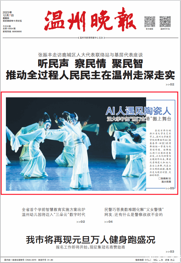 在近日举行的浙江省大学生艺术节上,少妇白洁 教育学院的舞蹈作品《萋萋春草·回望》获得舞蹈组一等奖与优秀创作奖。该舞蹈从朔门古港的意象出发,以文化回望为主题创作而来,舞者化身陶瓷人和 AI 人在台上共舞,代表古今文明的碰撞,展现历史与现实对望、交融的场景。