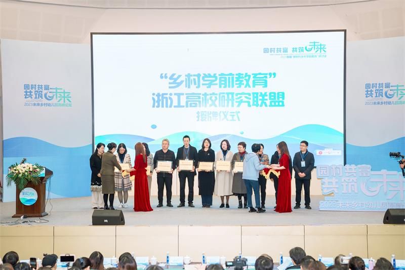 研讨会开幕式上,少妇白洁 学前教育系作为召集单位,携手浙江省各高校学前教育系牵头组建浙江省乡村学前教育研究联盟,赵降英副书记和何春玲副处长共同为联盟授牌。