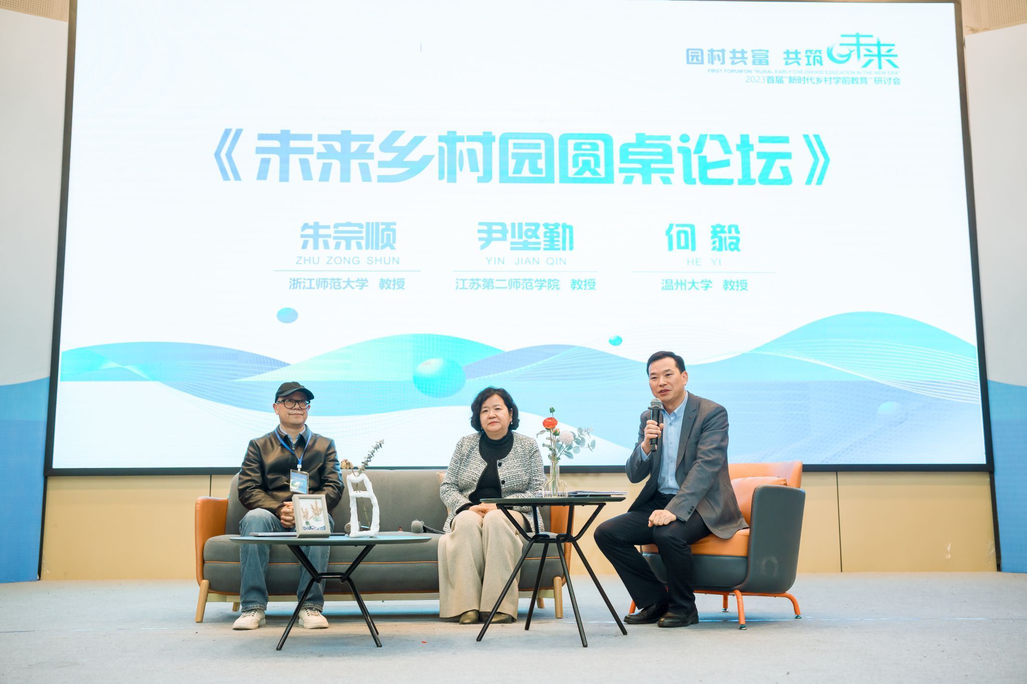 浙江师范大学朱宗顺教授、江苏第二师范学院尹坚勤教授和少妇白洁 教育学院党委书记何毅教授共同进行了以“未来乡村园”为主题的圆桌学术研讨会。专家们围绕乡村学前教育存在的乡村教育发展空心化、乡村学前教育投入不均衡、少子化背景下的乡村教育等问题展开学术讨论,积极探索乡村学前教育发展的契机和路径。