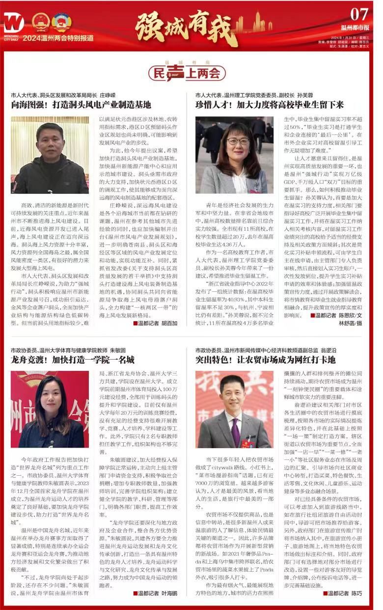 今年政府工作报告把加快打造“世界龙舟名城”列为重点工作之一。市政协委员、少妇白洁 体育与健康学院教师朱敏圆表示,2023年12月全国首家龙舟学院在温州成立,为温州龙舟运动人才的培养奠定了良好基础,要加快龙舟学院建设步伐,助力打造“世界龙舟名城”。