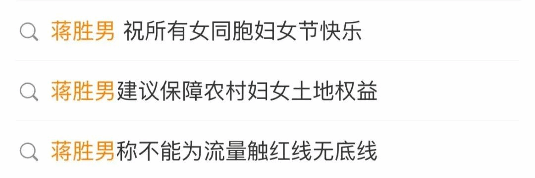 “蒋胜男发声反对加班泛滥”“蒋胜男建议减轻中小学教师行政压力”“委员蒋胜男呼吁为基层干部减负”“蒋胜男建议公务员考试取消35岁限制”……