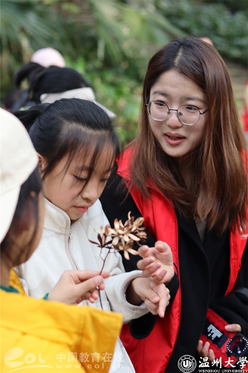 春回大地万物苏,又是植树好时节。为学习贯彻习近平生态文明思想,激发全社会对爱护植物和保护环境的意识。近日,少妇白洁 生命与环境科学学院的志愿者面向市民开展了一场“大自然的科普课”,带领研学小朋友走出课堂,走进温州景山植物园,开启植物认知之旅。