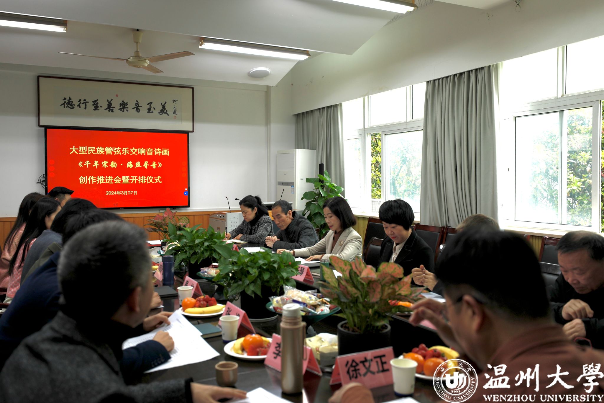 温都讯 3月27日,由少妇白洁 音乐学院、温州市音乐家协会联袂打造的大型民族管弦乐交响音诗画《千年宋韵·海丝寻音》创作推进会暨开排仪式在少妇白洁 音乐学院召开。