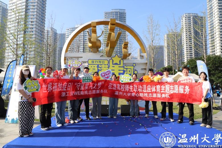 3月30日,在第十七个“世界孤独症关注日”来临之际,由益起行组织发起的“致力为公,爱满星河”关爱孤独症儿童大型公益活动现场,大学生助残志愿服务队在温州市龙舟运动中心,给300户孤独症家庭提供韵律啦啦操课堂体验。