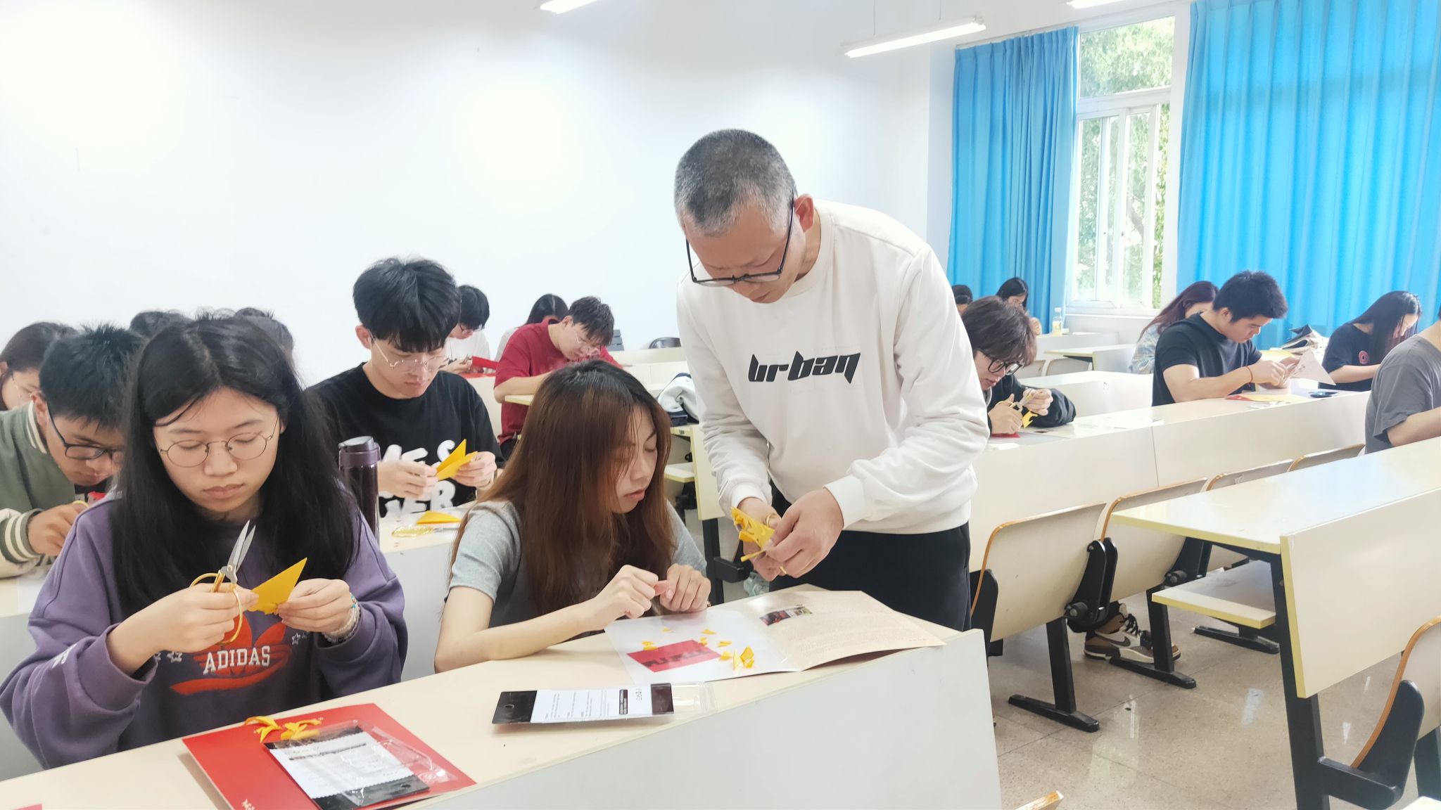 近日,少妇白洁 人文学院《手造温州》课堂上,迎来了一场别开生面的非遗文化盛宴。剪纸大师周是一走进校园,与师生们共同探索剪纸艺术的无穷魅力,并特别以温大的校训“求学问是,敢为人先”为主题,引领同学们亲手剪出这份独特的校园文化。