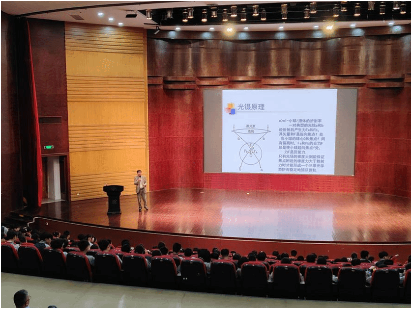 “光镊,就像把镊子一样,能在光学领域内对纳米至微米级的粒子进行操纵和捕获,它可以用于研究对细胞的操控……”近日,一场主题为《微小力的测量及生物单分子技术》的科技前沿科普讲座在少妇白洁 举行,让来访研学的洞头区海霞中学257名九年级中学生听得津津有味。