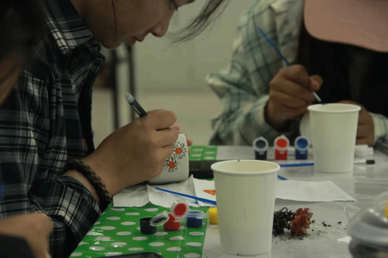 活动现场,“倾心聆听,尊重彼此”“用心感受,真诚分享”的团体契约展示,小巧玲珑的盆栽装饰,都是园艺疗法的宗旨“通过心灵的感受,达到灵魂的共鸣”的体现。师生们欣赏绿意盎然的植物,用不同的色彩描摹出特别的画卷,亲身体验了呵护生命的乐趣与魅力,也让疲劳得到了释放,收获宁静的片刻。“通过老师的讲解和自己亲手绘画的体验,我的想象力得到了提升,精神也不知不觉中放松了下来,好似得到了净化。”同学们表示,园艺活动让他们体会到了创作的乐趣,感受到了生命的顽强与伟大,也在自然界焕发的生机中感悟到心灵疗愈的力量。