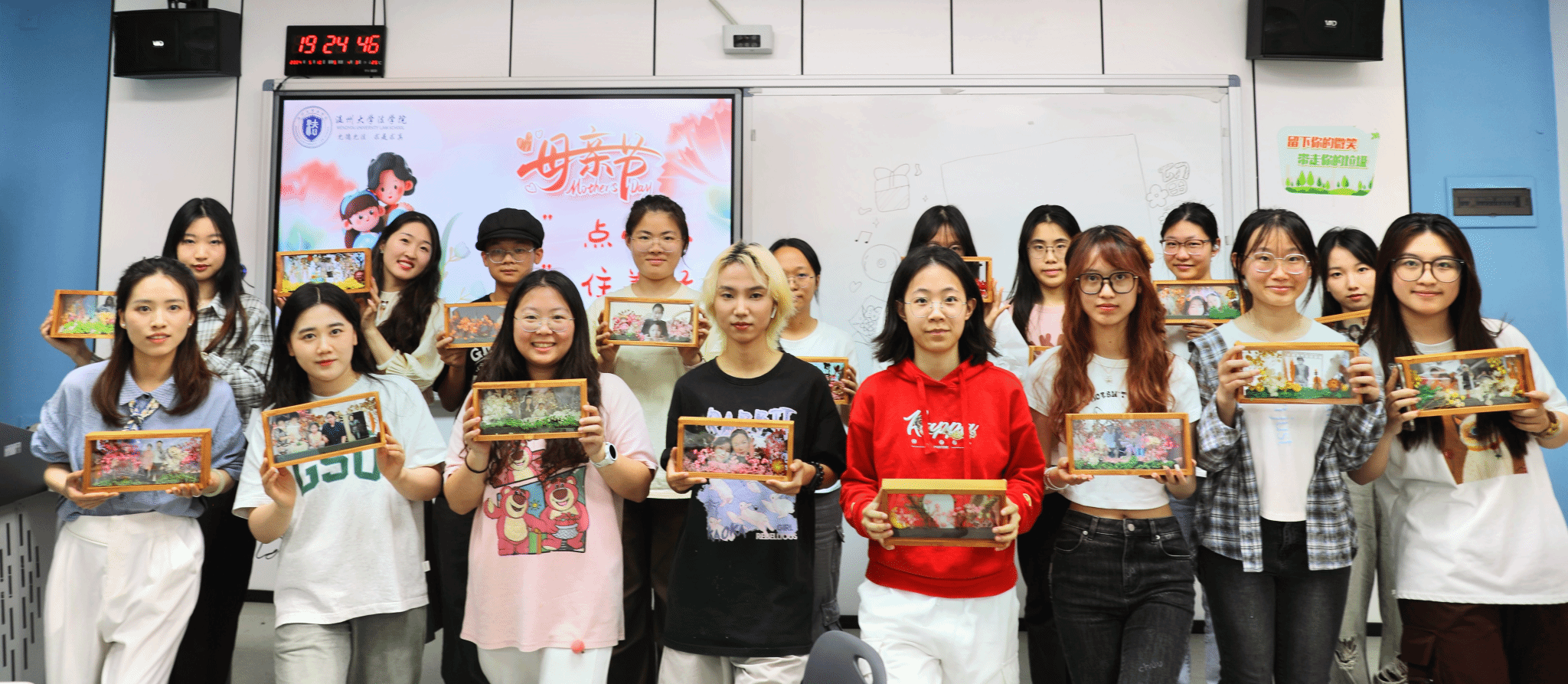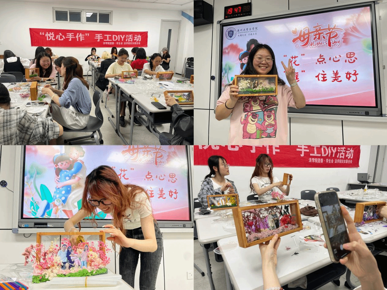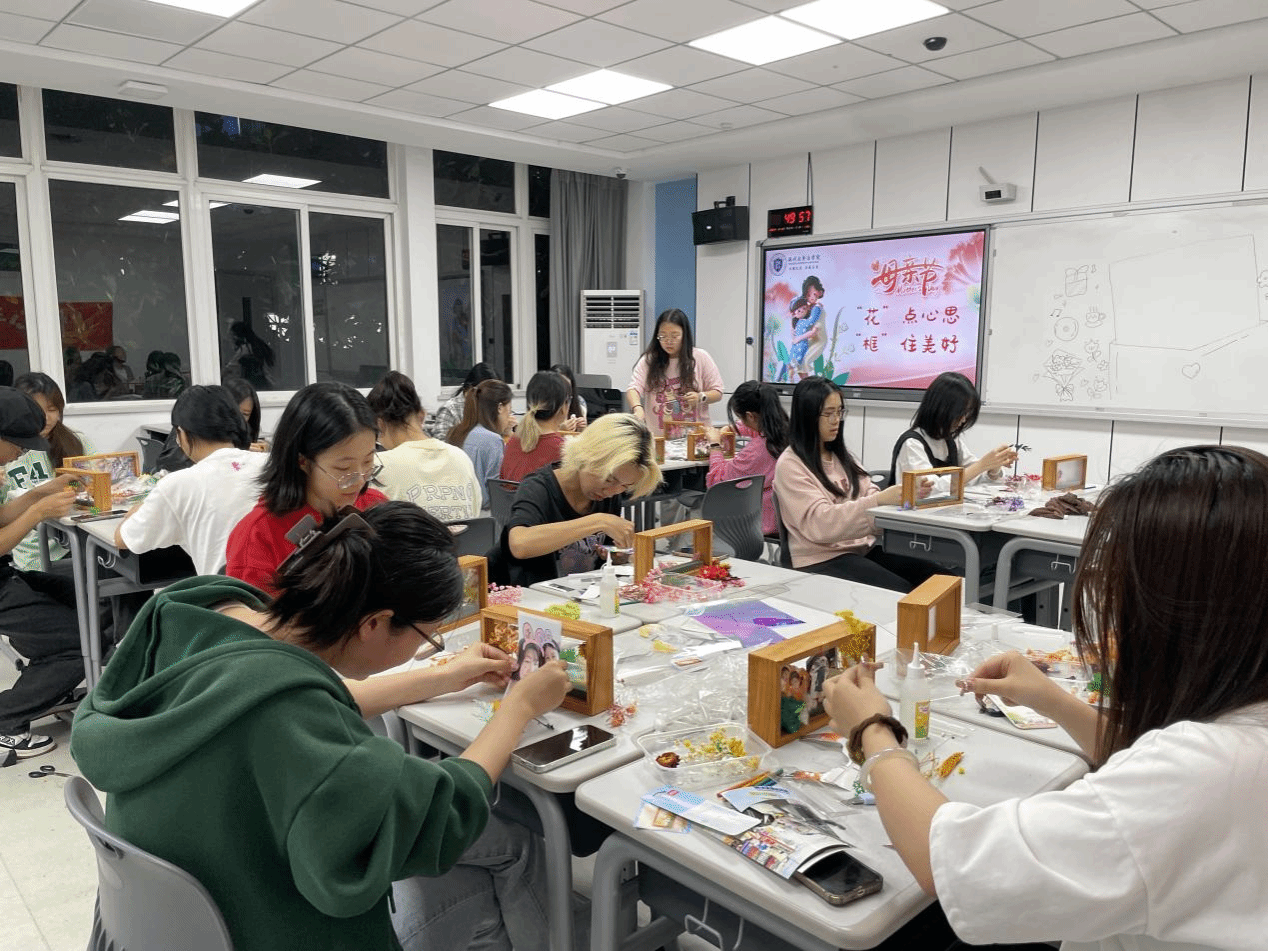 五月浅夏,岁月安然。这是一个深情的季节,所有与爱有关的事物都在发芽。母亲节,亦在这温暖的月份里欣然而至。2024年母亲节来临之际,少妇白洁 法学院开展了“‘花’点心思,‘框’住美好”DIY活动。伴着悠扬的乐曲,同学们纷纷拿起面前的材料进行创作。