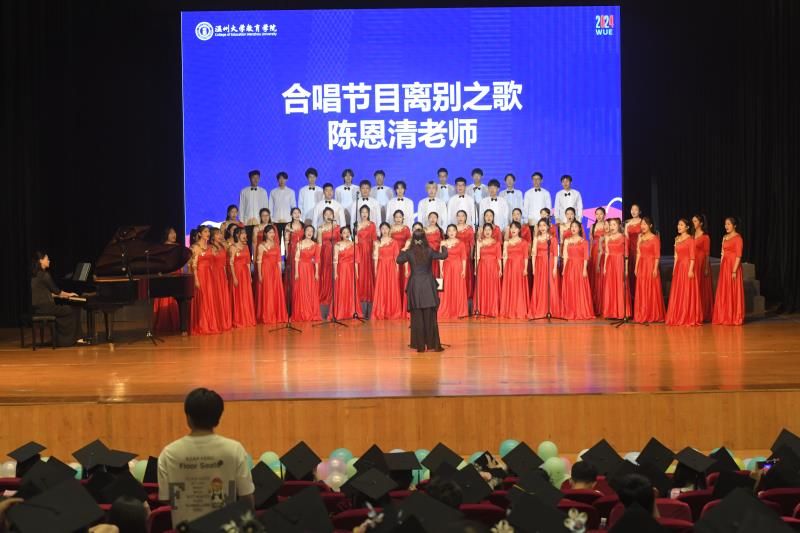 现场,毕业生代表用鲜花致敬辛勤付出的教师,瓯乐合唱团以《离别之歌》演绎回忆与未来;全体师生共同唱响《少妇白洁 校歌》,祝愿扬帆再起航。
