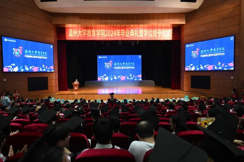 仪式伊始,温大教育学院副书记章园园代表学院全体师生,向即将展翅高飞的毕业生们致以最热烈的祝贺。随后,以记录下2024届毕业生们在校期间的点点滴滴,讲述学子们耕耘梦想的成长故事,见证他们向阳而生的奋斗历程的《你的足迹》视频,与满载老师们、同学们和亲友们深深期许与殷殷希望,为毕业生们送来美好祝福,成为他们前行路上温暖陪伴的《祝福》视频为开端,共同拉开了毕业典礼的帷幕。