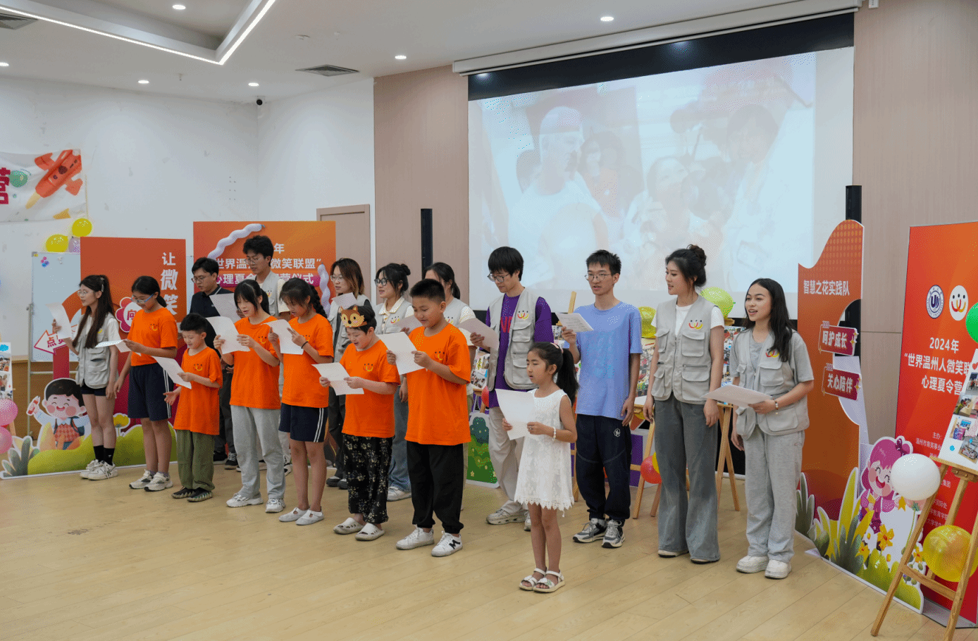 7月14日,2024年“世界温州人微笑联盟”心理辅导夏令营在温大幸福工坊营举行闭营仪式。7位接受过“微笑联盟”手术救助的孩子,在温大教师教育学院心理老师和专业大学生志愿者的辅导下,度过了“打开心扉”的一周。