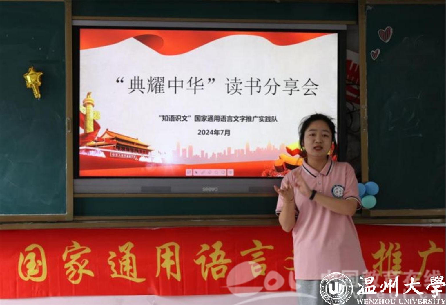 极响应教育部和国家语委关于传承发展中华优秀语言文化的号召,实践队成员们开展了“典耀中华”读书分享会,激发孩子们爱读书、善读书、读好书的热情,同时搭建一个展示平台,让当代青少年在分享中传承中华经典之韵,在交流中迸发创新之光,共同书写中华文化的辉煌篇章。