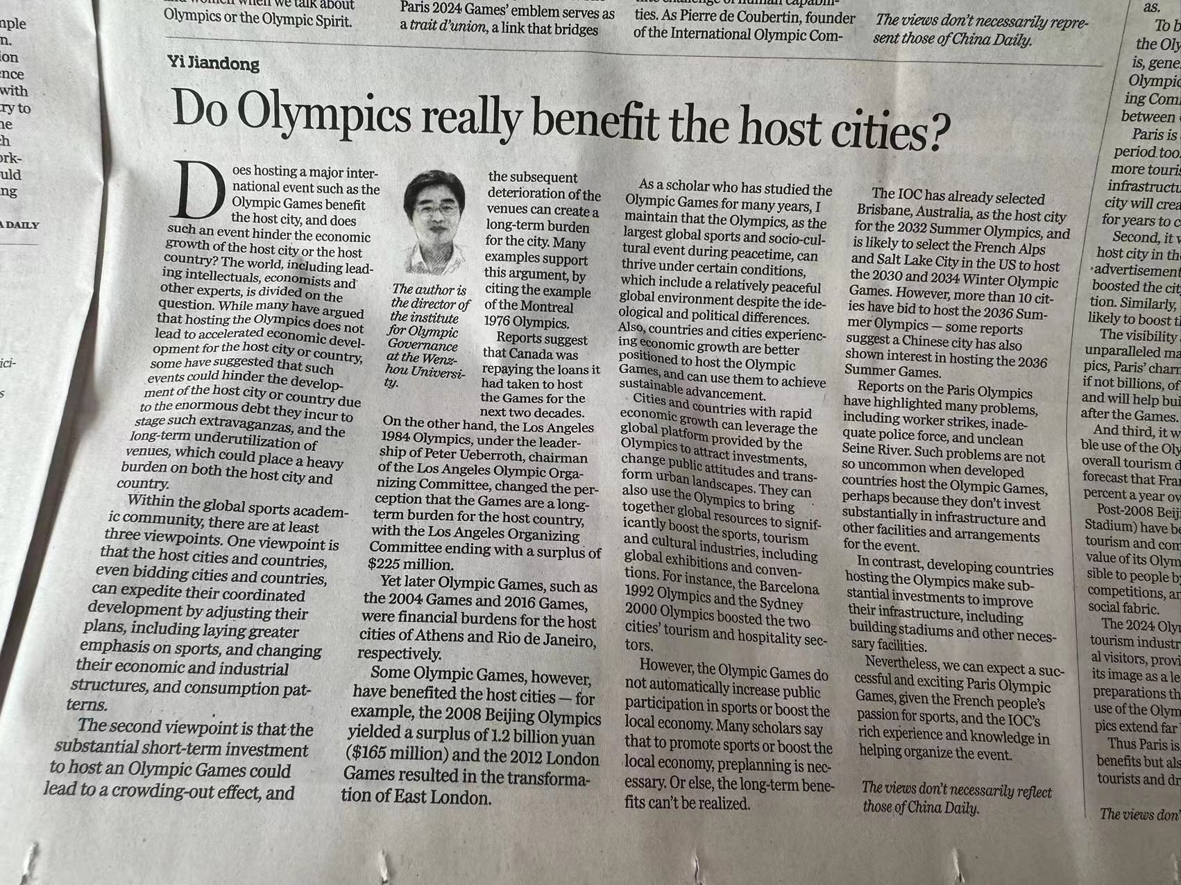The author is the director of the institute for Olympic Governance at the Wenzhou University.