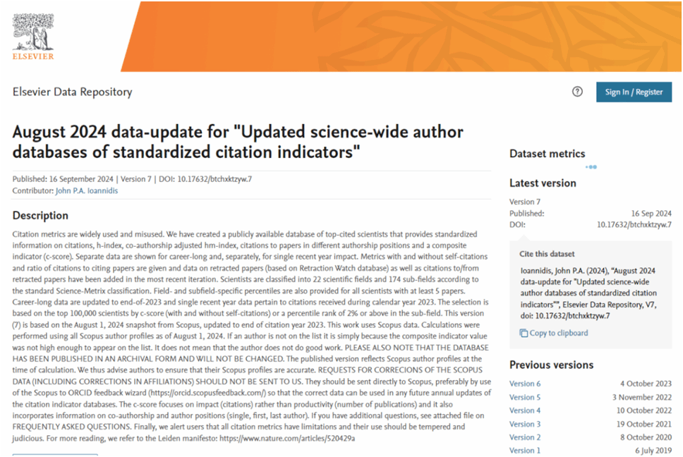 该榜单基于Scopus数据库的引用数据系统分析,采用了标准化的数据指标,使用总引用量、Hirsch H-index、共同作者修正的Schreiber Hm-index、单独作者、单独或者第一作者等6个关键因素评分全面评估科学家们的科研成就。为了更准确地反映各学科的特点,排行榜将科学家分为22个大领域和174个子领域,为科学家长期科研表现提供了一个衡量指标,能更客观、更真实地反映科学家的影响力。