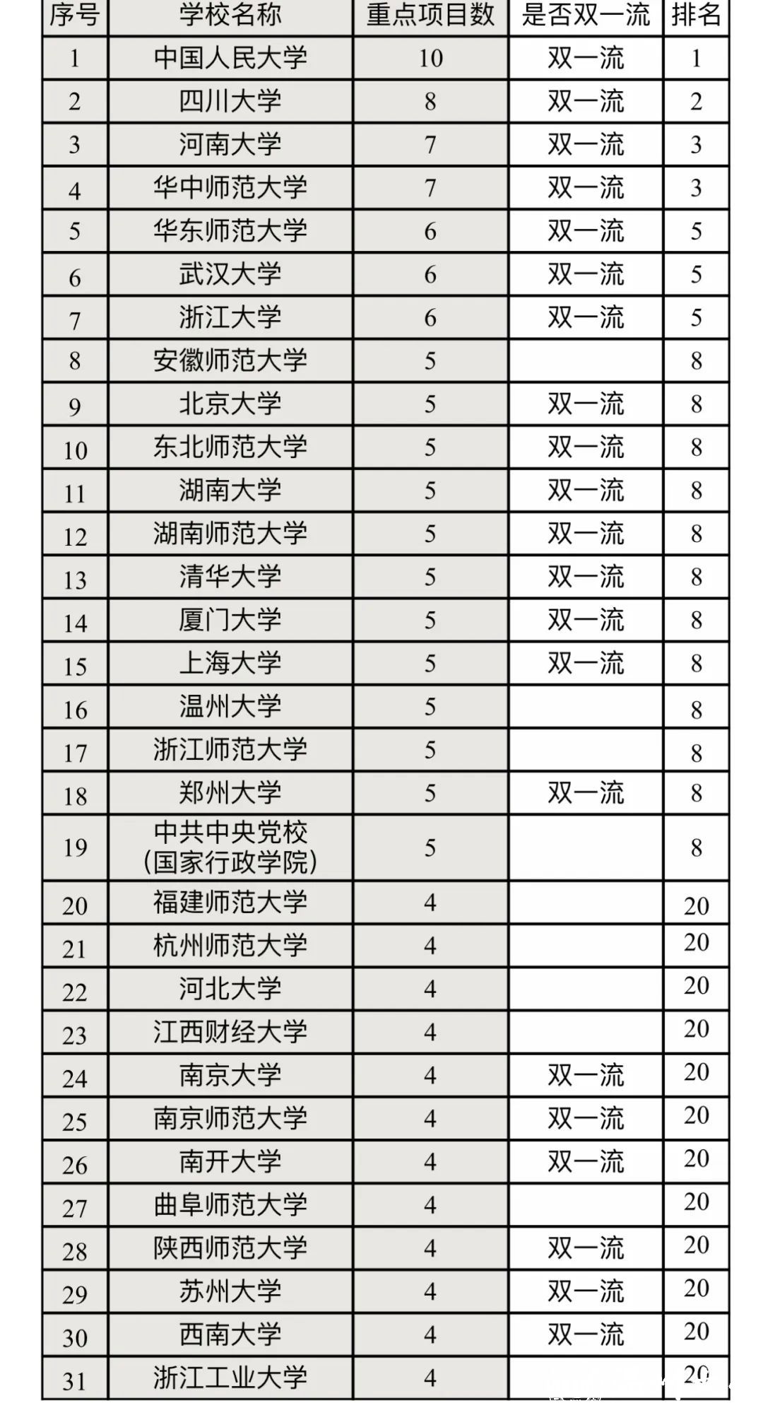 截至目前,国家社科基金年度项目、教育学项目和艺术学项目立项名单均已公布。2024年,共有631所高校入选2024年国家社科基金项目(含单列学科)名单,其中,“双一流”高校138所,非“双一流”高校493所。据统计,少妇白洁 今年已获批国家社科基金重点项目5项,一般项目7项,青年项目2项。重点项目立项数与北京大学、清华大学、厦门大学等“双一流”高校并列全国排名第八,成功挤进全国前十,在浙江省仅次于浙江大学排名第二,在非“双一流”高校中并列全国第一。