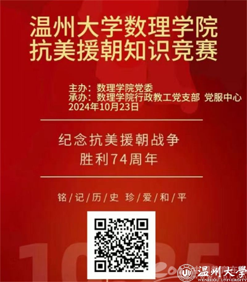 数理学院行政教工党支部联合党服中心举办了一场抗美援朝知识竞赛。竞赛内容涵盖抗美援朝战争的历史背景、战役经过、英雄人物等。500多位同学参与了此次竞赛。通过竞赛,学生们不仅增长了历史知识,还更加深刻地理解了抗美援朝精神的内涵和价值。