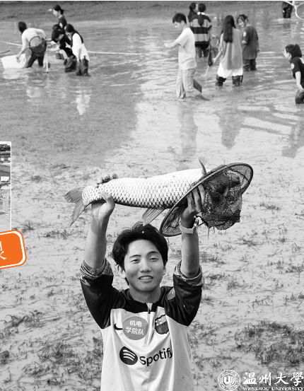 “两年一届捕鱼节,有利于明心湖 生态恢复。”生环学院院长郑向勇说,捕 鱼节不仅是一次“师生共渔”的娱乐嘉 年华,也是一次针对生环学院学子的第 二课堂教育。“苔草、狐尾藻、菹草…… 以前,明心湖的湖水非常浑浊。2021 年起,我们学院开始通过沉水植物种植 等专业治水技术,固定泥土,并定期放 入鱼苗,建立循环体系,改善了明心湖 的生态环境。这次捕鱼节活动,不仅是 劳动教育课,也是让同学们参与到明心 湖生态环境的定期维护中。”自温州大 学“明心湖劳动教育基地”正式启动以 来,生环学院坚持在课程教学中渗透劳 动教育,依托学院实验室沉水植物种 植、放生鱼苗等专业治水技术成功改善 了明心湖的生态环境。