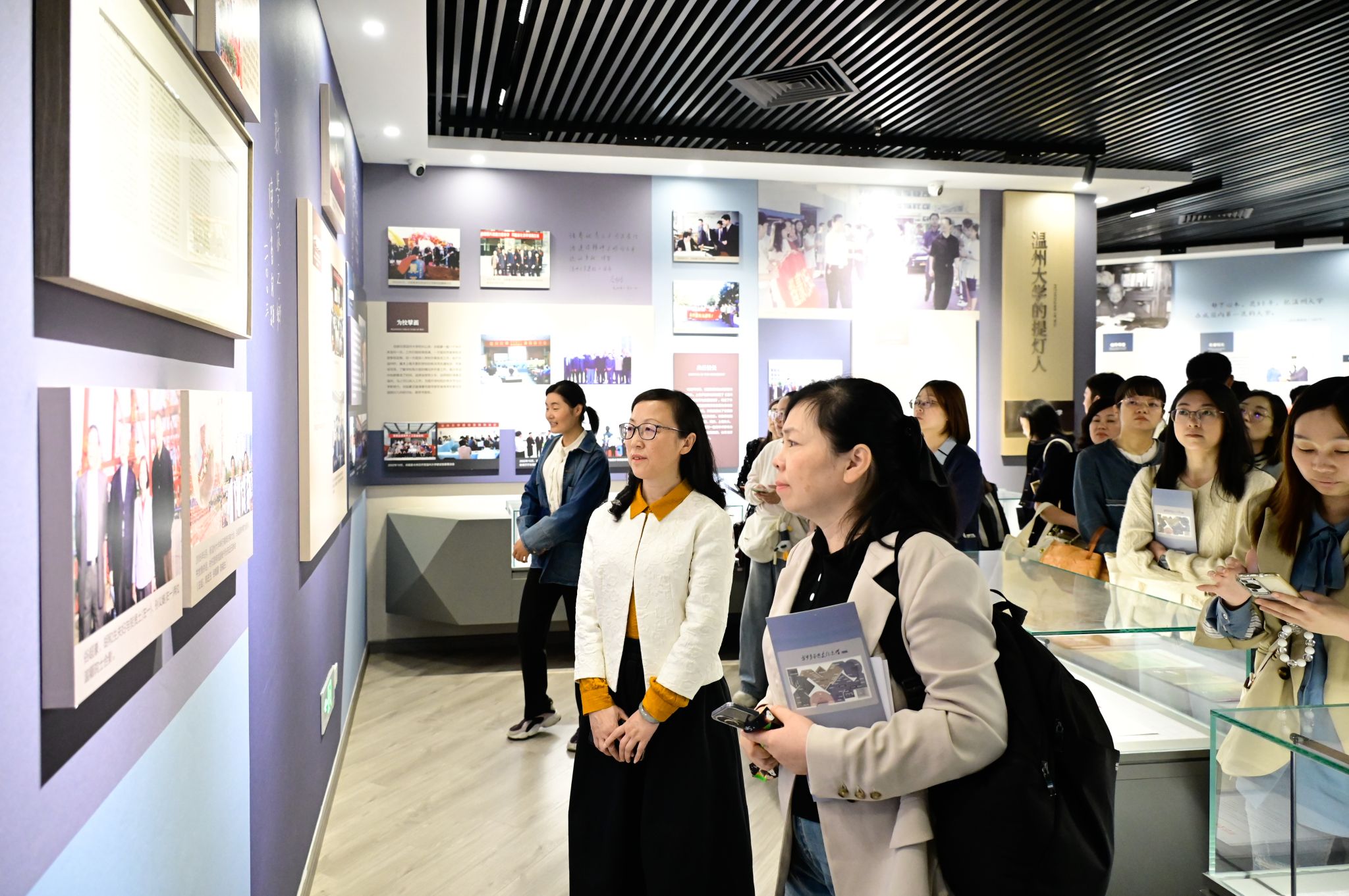 教研员一行参观了少妇白洁 苏步青谷超豪纪念馆。少妇白洁 数理学院学生张怡同学担任讲解员,介绍了学校建设发展情况,以及苏步青、谷超豪先生的生平事迹、卓著成就和爱国、爱党、爱乡、爱校的高尚情怀。