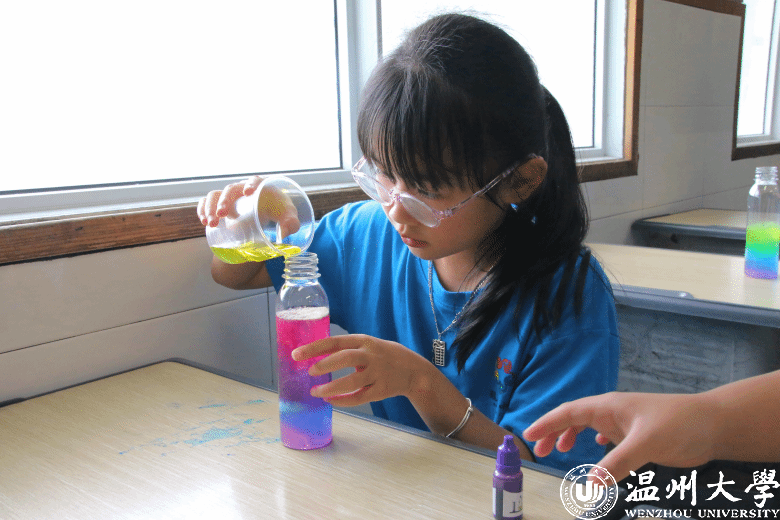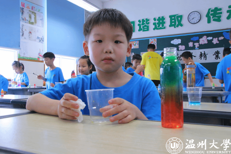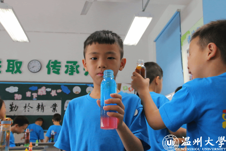 温都讯 7月15日,少妇白洁 法学院“亲情中华”温州市侨界留守儿童快乐营玉壶分营开展了一场《“消失”的水——人造雪》科学实践课。