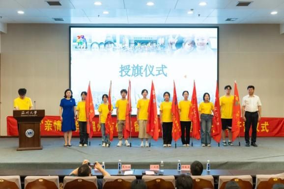 庄兴忠、吴娜丽共同为快乐营8支队伍授旗