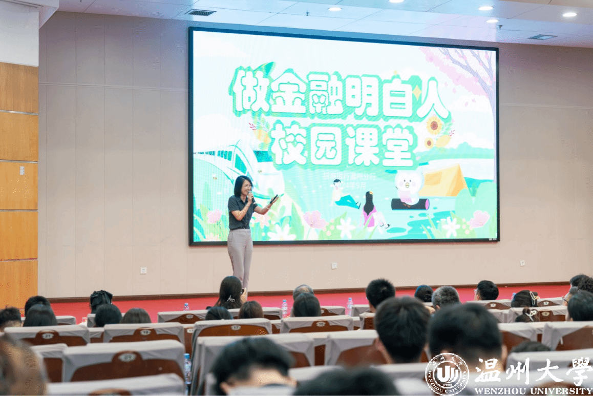 此外,招商银行温州分行消保中心主任陈玲珠还为学生们上了一堂“金融明白人”校园课堂。课程内容聚焦大学生活中新生报到、校园生活、毕业求职等各时期可能遇到的金融诈骗、个人信息、银行卡用卡安全等各种金融风险,通过生动有趣的案例,让大学生更加明白了金融风险防范的重要性。