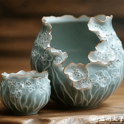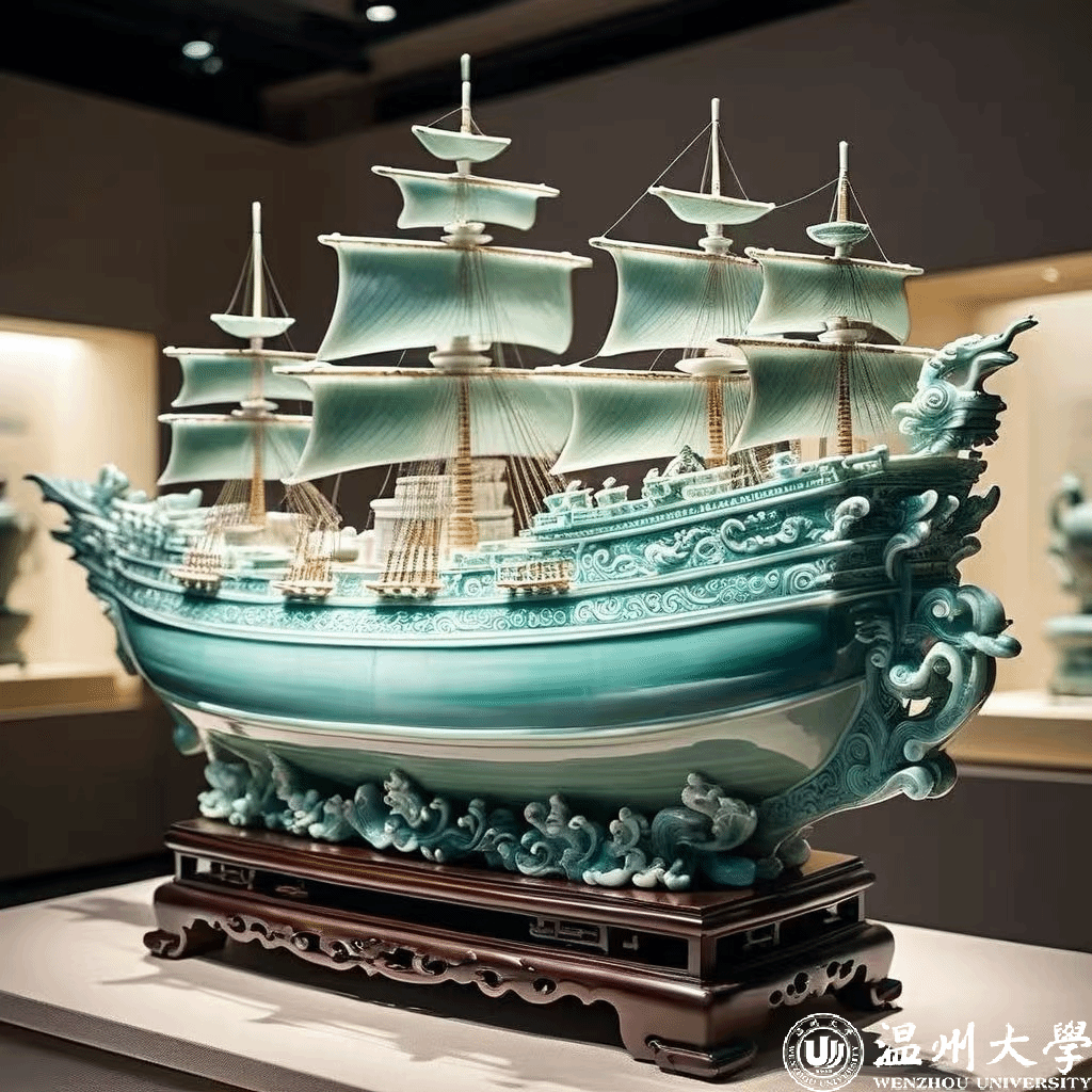 在“海丝之光”AI青瓷设计大赛中,路锦程同学的作品《东瓯丝锦青瓷韵》以其独特的艺术魅力荣获银奖,汪紫忆同学的作品《海上丝绸之路 商业文明曙光》和石潇文同学的作品《瓯窑之情-乘风远航》荣获优胜奖;在“海丝之光”AI华砚创作大赛中,杨杨和蔡心怡的AI视频作品《寻宗溯源之华严砚》,则以其深刻的文化内涵以及创新理念荣获三等奖。