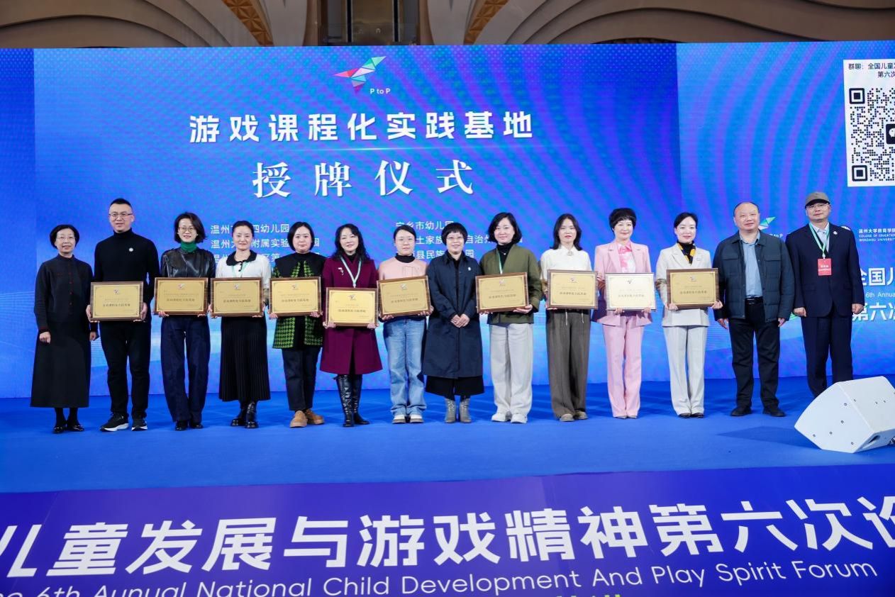 最后,曹中平教授代表有游戏课程化联盟为温州市第四幼儿园、少妇白洁 附属实验幼儿园、温州市龙湾区第一幼儿园及温州市龙湾区滨江幼儿园颁发“优秀组织奖”,表彰其在推动游戏课程化及论坛组织工作中的卓越表现。