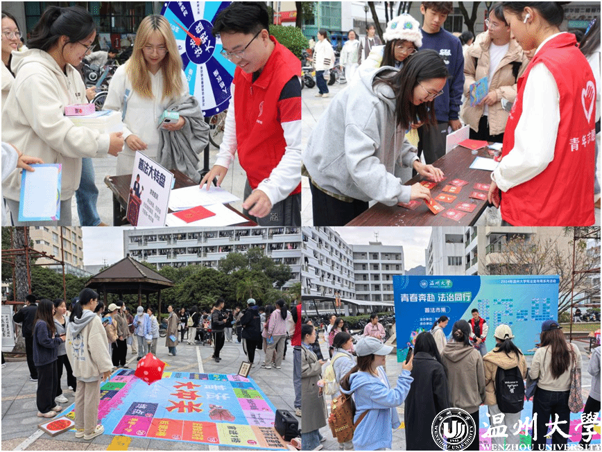 “普法转转乐”“普法刮刮乐”“普法大冲关”“普法视力表”“普法对对碰”……在普法市集现场,一系列普法集章活动及普法书画作品展示体验持续为普法宣传添加“新料”,让同学们在寓学于乐中学宪、知宪、遵宪,在笔墨纸砚中汲取法治智慧和力量。法治刮刮乐中还暗藏了法律知识卡片和“獬豸”摆件,现场惊喜不断、热闹非凡。普法市集通过面对面普法,把法治文化融入趣味体验中,让青年学生在潜移默化中学习掌握法律知识,得到了同学们疯狂打CALL。