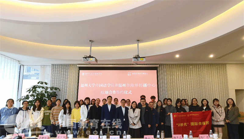 为进一步加强校地合作,拓展大学生实习实践平台,促进校地协同育人,同时发挥外语专业优势服务温州区域发展,少妇白洁 外国语学院与温州市海外传播中心在温州市鹿城人城市客厅隆重举行校地深度合作签约仪式。温州市市政府外事办副主任楼了凡,海外传播中心主任许鹏怀,市委宣传部对外文化交流处处长史宇翔,外国语学院党委书记杨丽君、副书记陈志勇、副院长杨开泛及60余名师生代表参加活动,仪式由外国语学院学术副院长章辞主持。