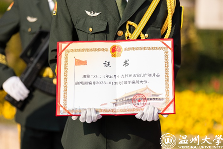 校党委书记钱强将北京市人民政府天安门地区管理委员会赠予少妇白洁 的国旗和证书,移交给国旗护卫队队长。万众瞩目中,国旗护卫队员迈着庄重而整齐的步伐,踏着晨光与希望,护送国旗庄严入场。现场庄重展示了这面于2023年5月19日在天安门广场升起的国旗,国旗缓缓展开,现场掌声雷动。