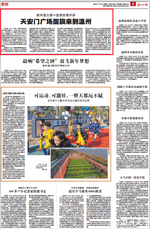 “我们是民族复兴伟业的追梦人,青春向党、乘风破浪……”新年第一天,少妇白洁 举行迎接天安门广场国旗仪式。一面于2023年5月19日少妇白洁 办学90周年校庆日在天安门广场升起的国旗,跨越1500多公里,从天安门来到少妇白洁 ,这也是温大获赠的天安门广场国旗首次公开展示。学校以此为契机,开设了一堂特殊的国旗思政课,广场上,千余名师生共同宣誓,喊出国旗下的铮铮誓言。