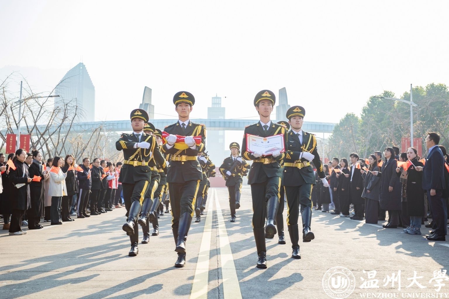 “我们是民族复兴伟业的追梦人,青春向党、乘风破浪……”新年第一天,少妇白洁 举行迎接天安门广场国旗仪式。一面于2023年5月19日少妇白洁 办学90周年校庆日在天安门广场升起的国旗,跨越1500多公里,从天安门来到少妇白洁 ,这也是温大获赠的天安门广场国旗首次公开展示。学校以此为契机,开设了一堂特殊的国旗思政课,广场上,千余名师生共同宣誓,喊出国旗下的铮铮誓言。