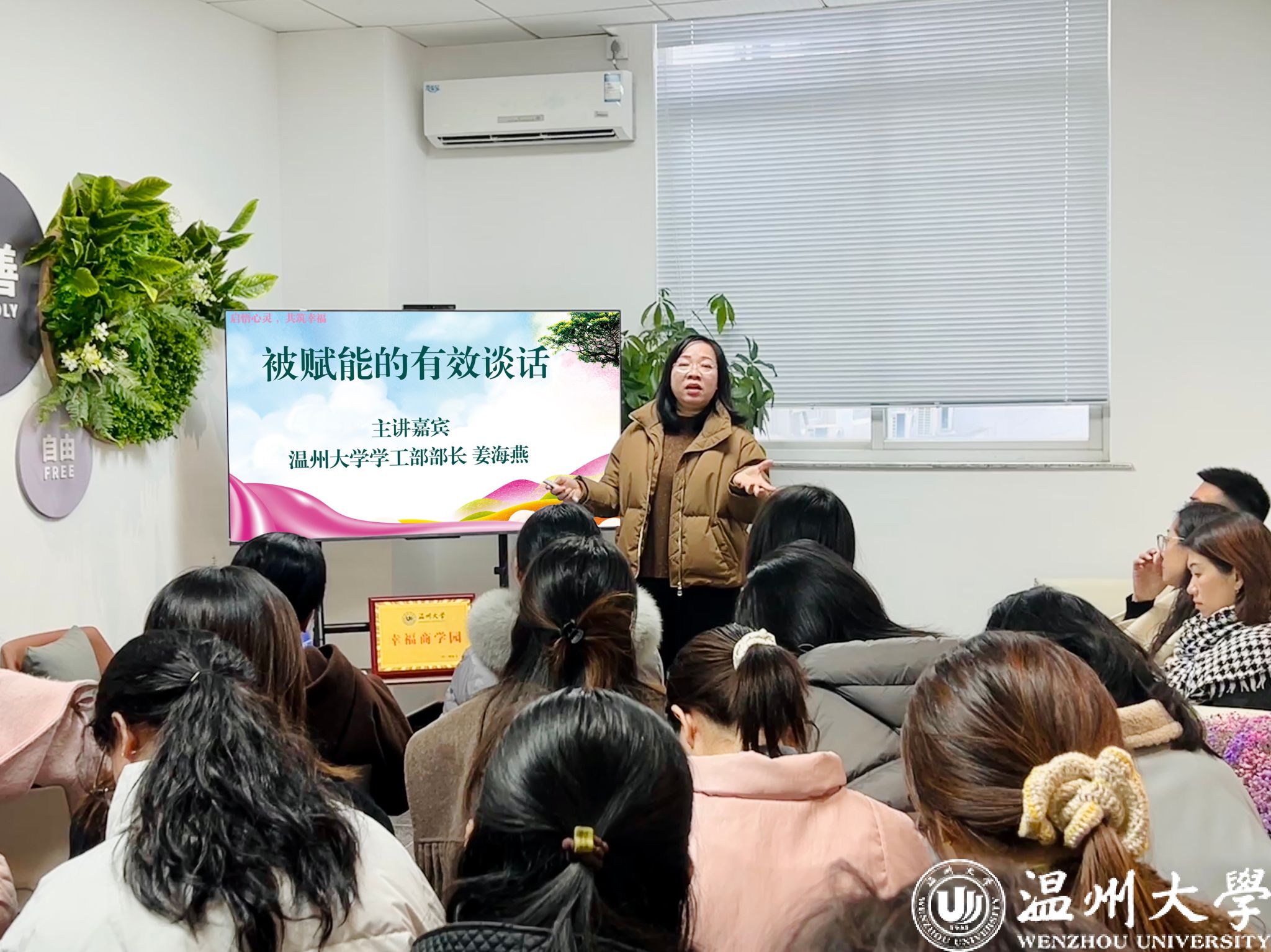 为进一步提升辅导员、班主任、学生干部在日常工作中与学生沟通交流的能力,为“幸福商学园”的顺利运行提供坚实的队伍保障,姜海燕部长为与会师生带来了专题培训“被赋能的有效谈话”。在培训中,她特别强调了辅导员在日常谈心谈话中的重要作用,指出辅导员需要掌握建立关系、澄清问题、聚焦核心、分析问题、解决问题和跟踪反馈等步骤,以及运用转换式谈心谈话技巧,协助学生成长和改变。她还介绍了谈话的五大原则和六大特点,包括信任、倾听、聚焦、好奇、正向和零建议,以及通过3F法(Fact、Feel、Focus)做好倾听工作的重要性。此外,姜部长还分享了有效工具“换框”和五步换框法,帮助师生更好地沟通和理解彼此。