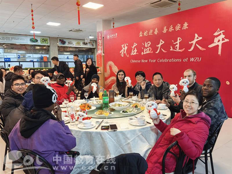 活动当晚,温大怡口乐餐厅一楼装扮一新,张灯结彩、暖意融融。学校为寒假留校学生准备了丰盛的年夜饭,校党委副书记庄兴忠,副校长王舜,有关部门、学院负责人与留校师生欢聚一堂,共同迎接新春佳节的到来。留学生们在品尝美味的同时,也感受到了来自学校的温暖与关怀。