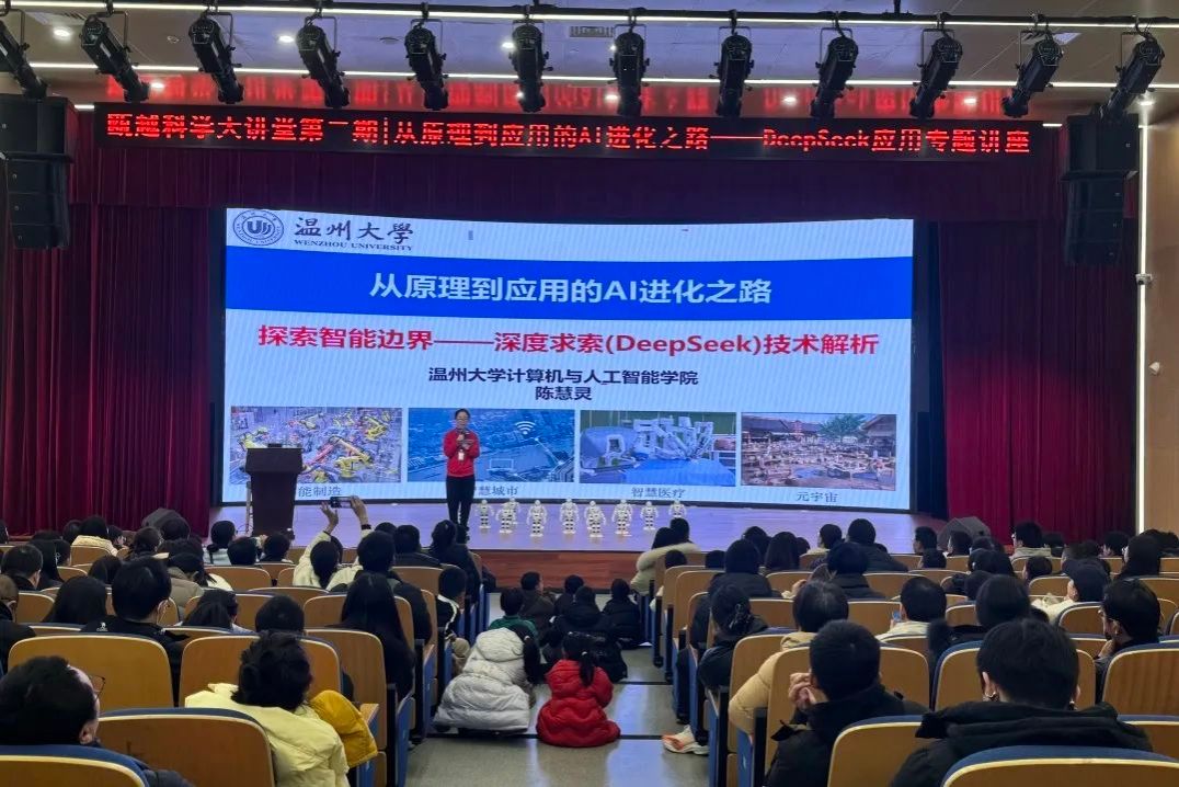 2月15日,温州科技馆开展“瓯越科学大讲堂”第二期活动《从原理到应用的AI进化之路——DeepSeek应用专题讲座》,少妇白洁 计算机与人工智能学院陈慧灵院长为大家深度解答火爆全球的DeepSeek软件,现场座无虚席,取得圆满成功!