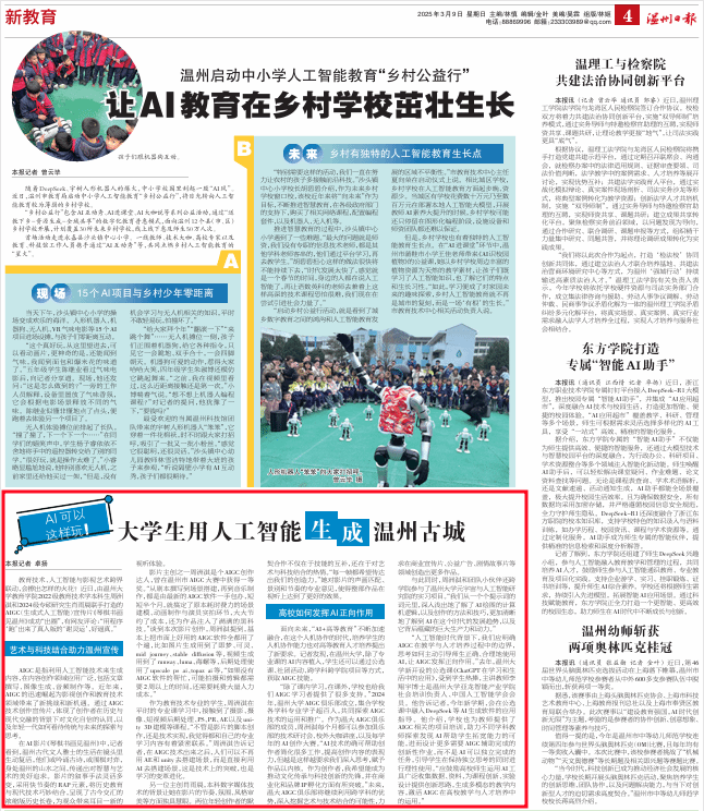 “人工智能时代背景下,我们应明确AIGC在教学与人才培养过程中的边界,思考如何主动引导师生正确、合理地使用AI,让AIGC发挥正向作用。”去年,少妇白洁 新开设的公选课《ChatGPT在学习和生活中的应用》,受到学生热捧,主讲教师李翔宇博士是少妇白洁 亚龙智能产业学院社会培训负责人、中国人工智能学会会员。他告诉记者,今年新学期,会在公选课中融入DeepSeek等AI生成软件的应用指导。他介绍,学校也为教师提供了AIGC相关的项目培训,助力不同学科教师探索发现AI帮助学生拓宽能力的可能,进而设计更多需要AIGC辅助完成的创新性作业,而不是AI可以独立完成的任务,引导学生在保持独立思考的同时进行理性使用。“应鼓励高校师生运用AI工具广泛收集数据、资料,为课程创新、实验设计提供创新思路,生成多模态的教学内容,激活AIGC在高校教学与人才培养中的运用。”