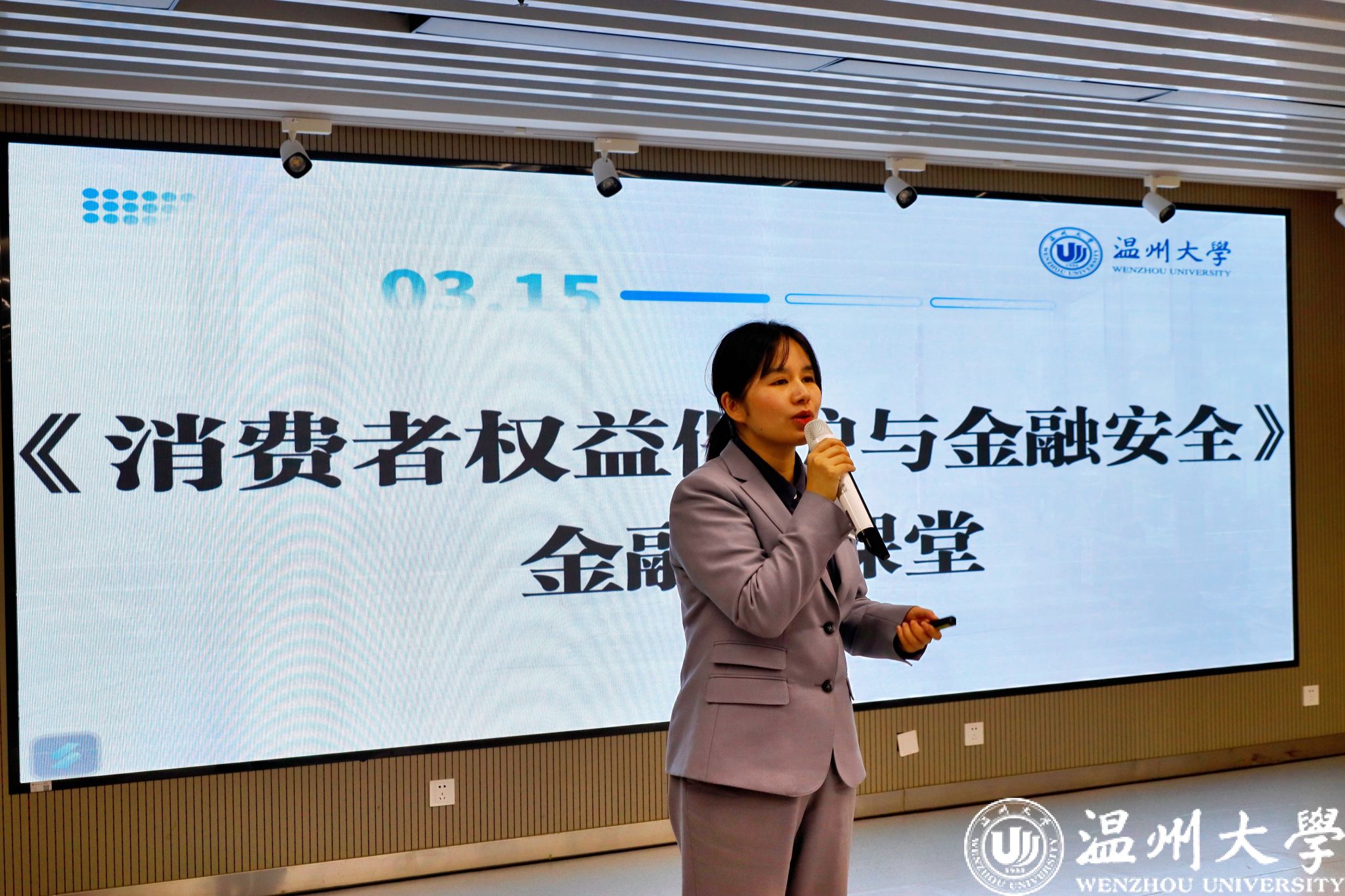 活动伊始,招商银行温州分行工作人员向学生们发放了消费者权益保护宣传资料,并普及了《中华人民共和国消费者权益保护法》相关知识。随后,他们通过“案例剖析+趣味问答”形式,为学生带来了一堂生动的金融小课堂《消费者权益保护与金融安全》,内容涵盖反诈防骗、个人信息保护、理性借贷等金融常识,激发了学生的参与热情,使金融知识在轻松氛围中深入人心。