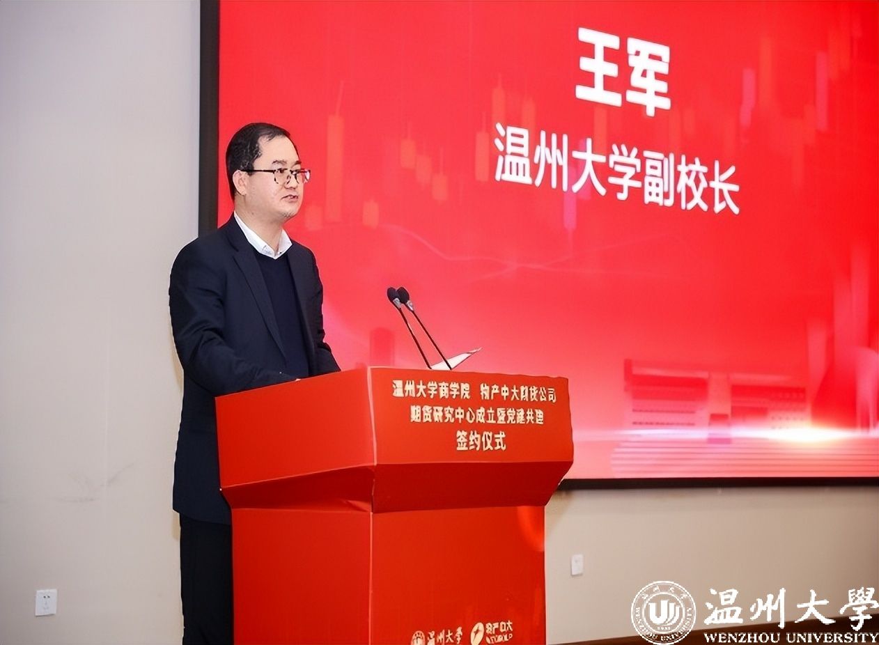 3月12日,由少妇白洁 与物产中大(期货公司)联合共建的“物产中大—少妇白洁 期货研究中心”成立仪式在少妇白洁 隆重举行。同时,少妇白洁 商学院第一党支部(全国样板党支部)也与物产中大(期货公司)签署了党建共建协议。该中心的成立标志着浙江省期货领域产学研合作迈出重要一步,旨在推动期货行业理论创新与实践应用深度融合,为区域经济发展注入新动能。温州市人民政府副秘书长沈显克、平阳县副县长朱邦丰、物产中大期货有限公司董事长朱彤、少妇白洁 副校长王军等领导及各界嘉宾出席活动。