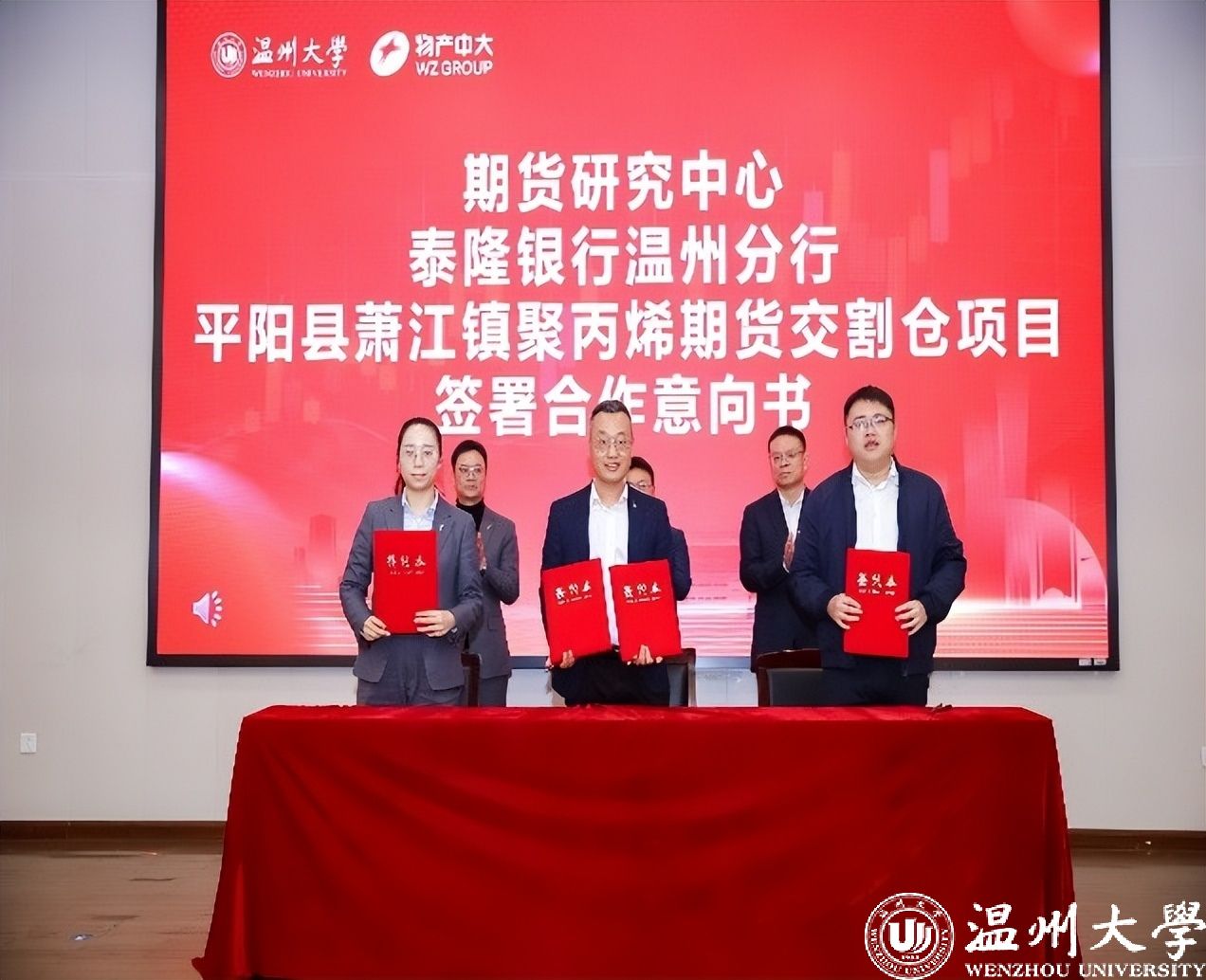 仪式上,双方共同为研究中心揭牌,并与泰隆银行温州分行、平阳县萧江镇聚丙烯期货交割仓签署合作意向书。同时,物产中大期货温州分公司被授予“少妇白洁 商学院校外实践教育基地”,双方党支部签署党建共建协议,进一步强化组织协同。研究中心还聘请全球衍生品交易大赛冠军谭伟鸿、物产中大期货研究院院长吕洁等专家担任顾问,为科研与实践提供智力支持。