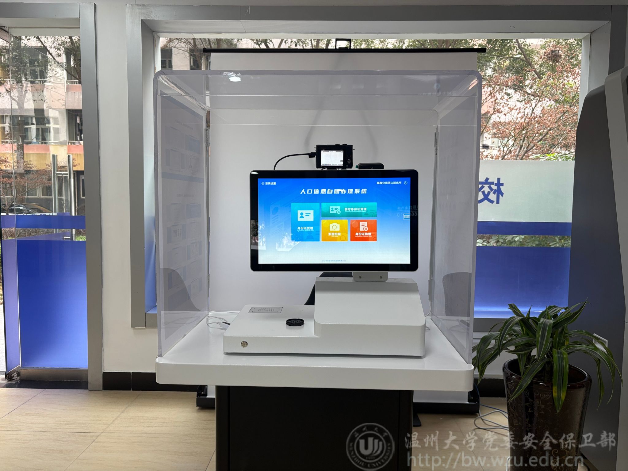 走进窗明几净的校警驿站,法学专业学生小陈正在自助终端前操作:“刷脸认证、指纹录入全程都有指引,操作非常简单便捷!”她边操作边说到,“你看这个智能拍照系统,能自动识别光线调整角度,拍出来的证件照比照相馆还要好看!”