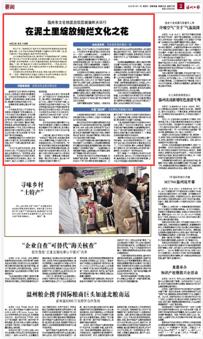 眼下,随着一个个带着泥土芬芳的文化项目落地生根,温州正以文化特派员制度为纽带,编织起城乡文化交融互促的崭新图景,让文化之花在瓯越大地绽放得更加绚烂。
